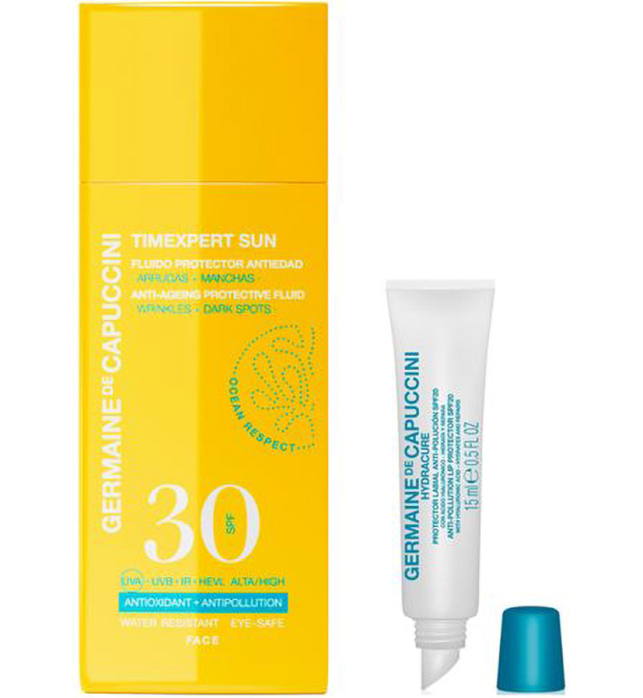 Germaine de Cappucini Набор TimExpert Sun / Эмульсия солнцезащитная антивозрастная для лица SPF30 + HydraCure Бальзам для губ SPF20, 1 шт.