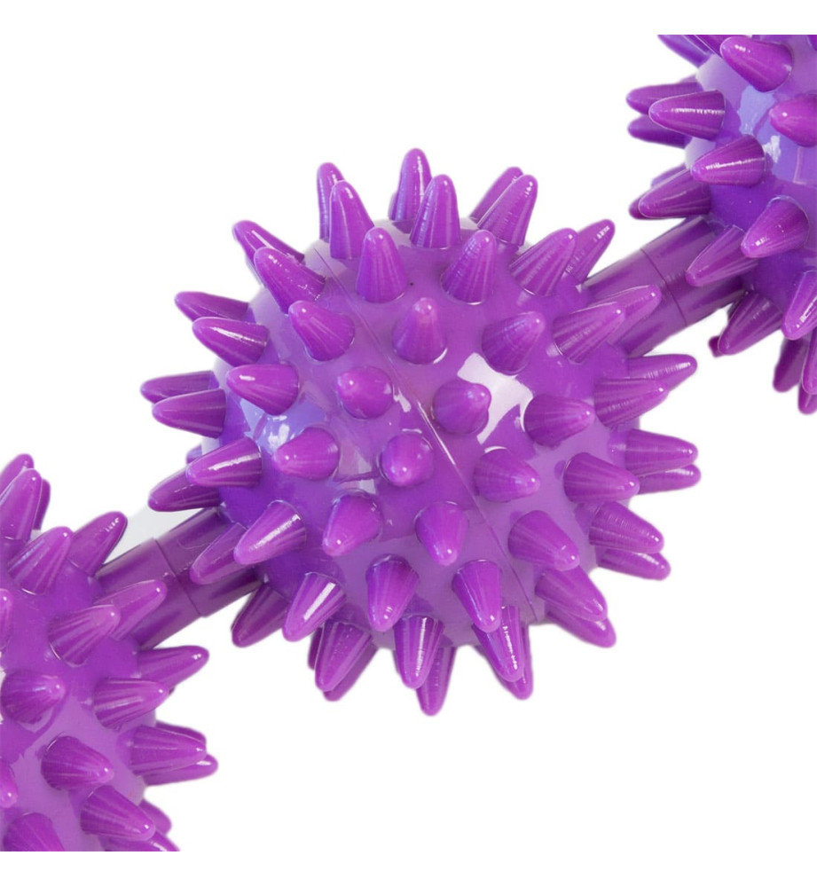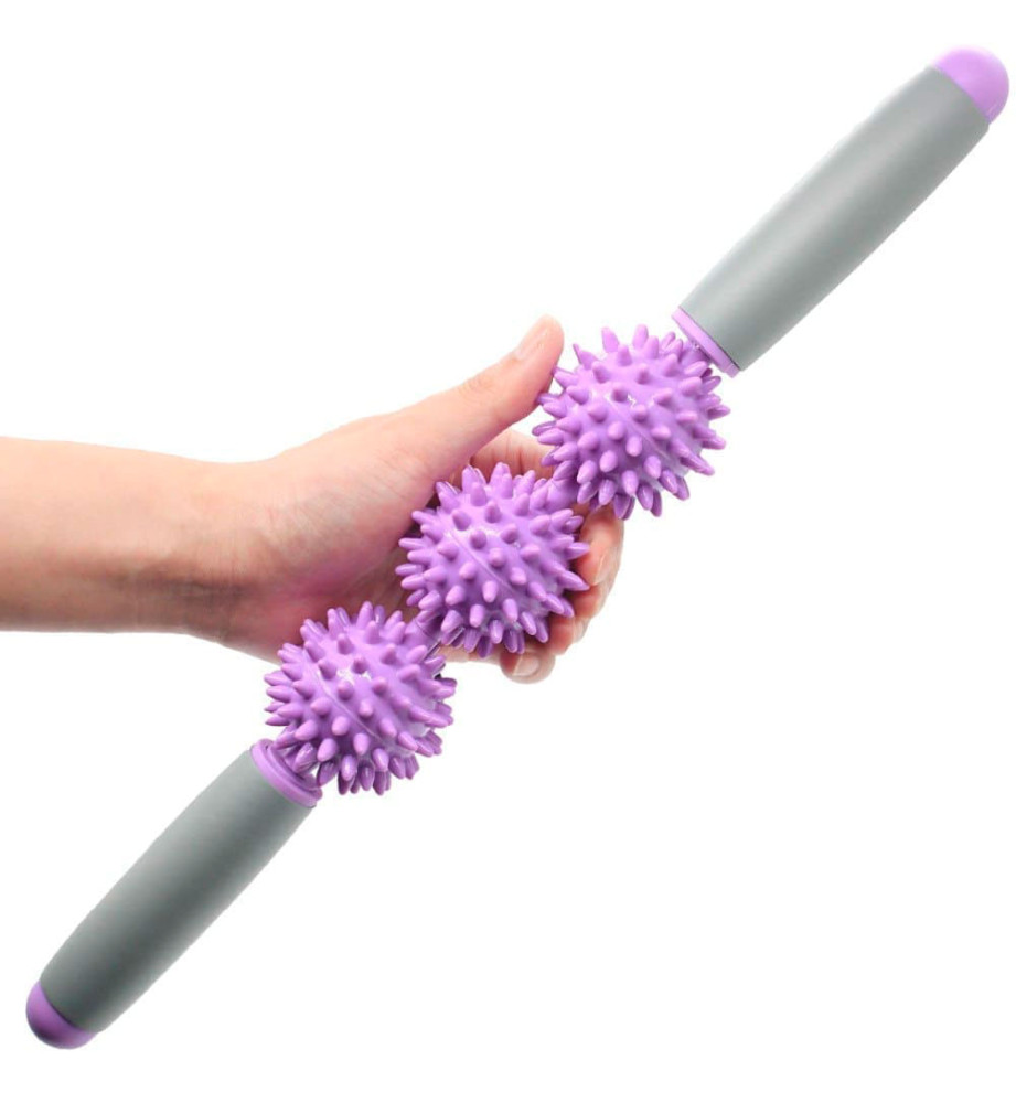 Массажная палка для фитнеса и йоги представляет собой ролик с массажными крутящимися секциями и двумя удобными прорезиненными ручками.