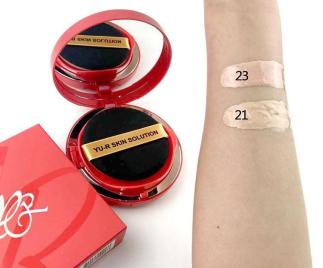 Кушон Yu.R на 50% состоит из эссенции. Это мультифункциональное средство, которое одновременно скрывает недостатки кожи (воспаления, покраснения, неровный тон и текстура кожи) и обладает ухаживающими свойствами, увлажняет и успокаивает кожу. Можно носить с собой в сумочке и поправлять макияж в течение дня, как пудрой.